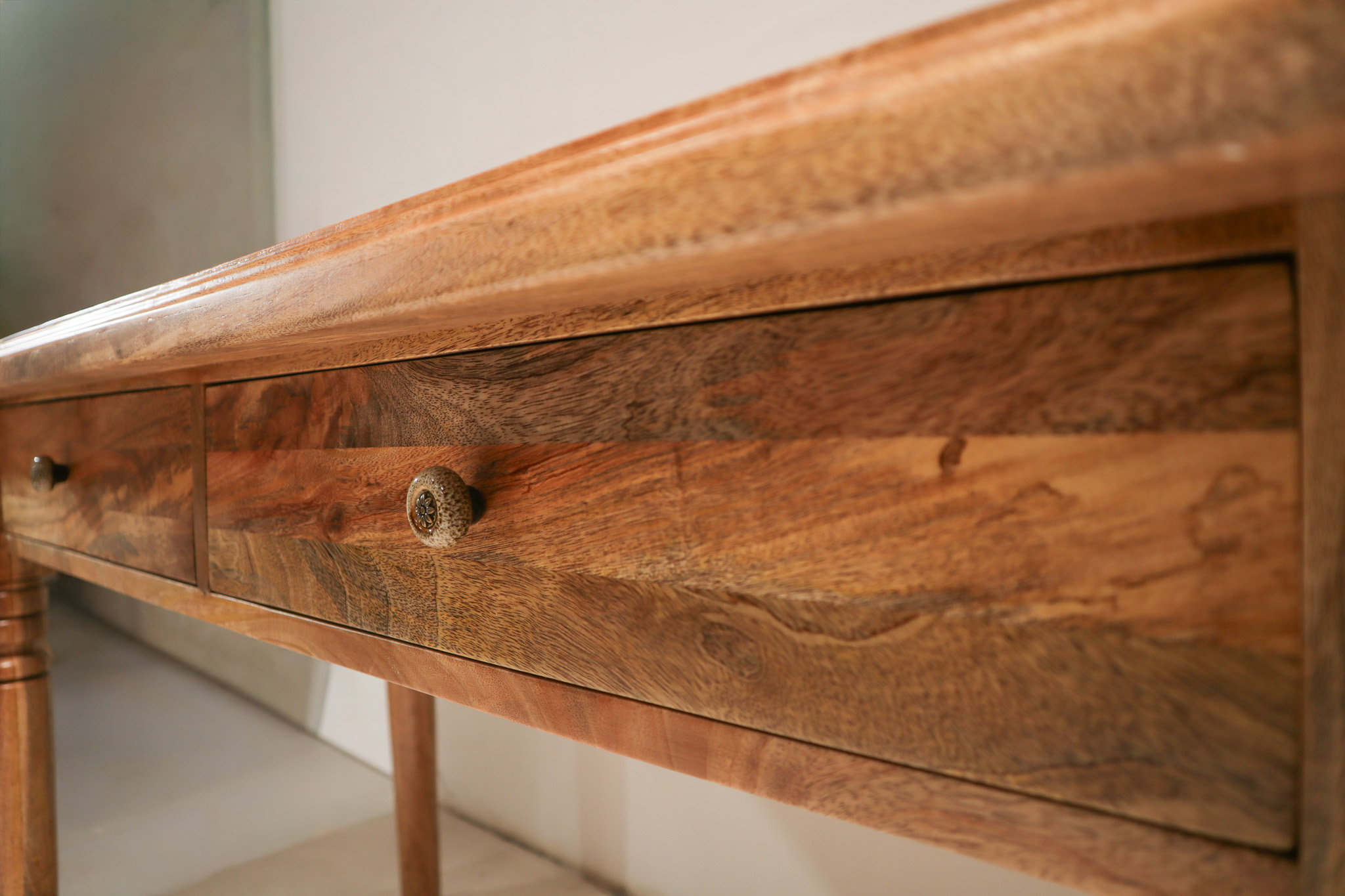 We created the Tigoni study desk for those who find modern minimalist desks too cold and characterless. It brings warmth and personality to a workspace. Crafted from solid mango wood.